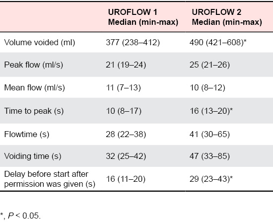 The results of the uroflowmetries are given in Table 1. The sensations reported are given in Table 2.