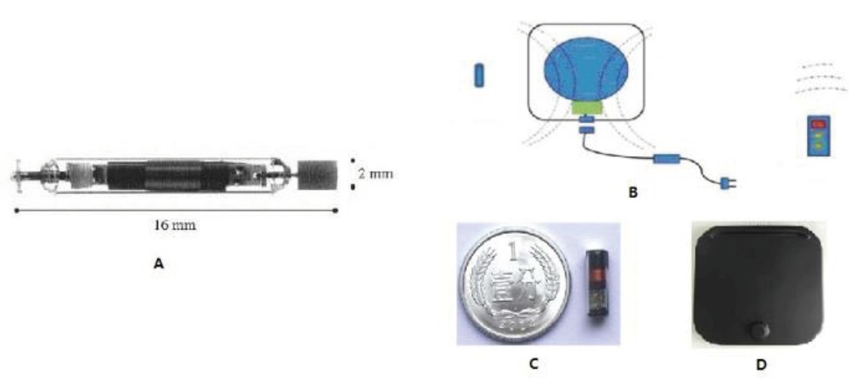 Muscle autonomic contraction and passive electrical stimulation have been extensively and intensively studied, including use of an implantable miniature neurostimulator (BION, Fig. 1A), similar to our product. The BION stimulator has been CE-certified in Europe and it treats acute urinary incontinence by stimulating the pudendal nerve [4]. However, compared to the NuStim neurostimulator, BION is battery-powered and larger-sized. On the other hand, NuStim is cylindrical and is only 3 mm in diameter and 10 mm in length.