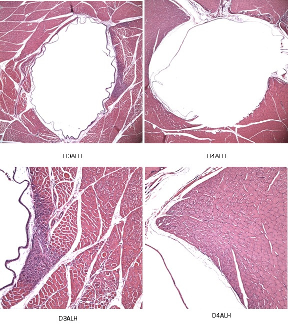 Figure 6 Section was derived from an stimulation thigh muscle (0.5 cm,1.0 cm,2.0 cm from the electrode)